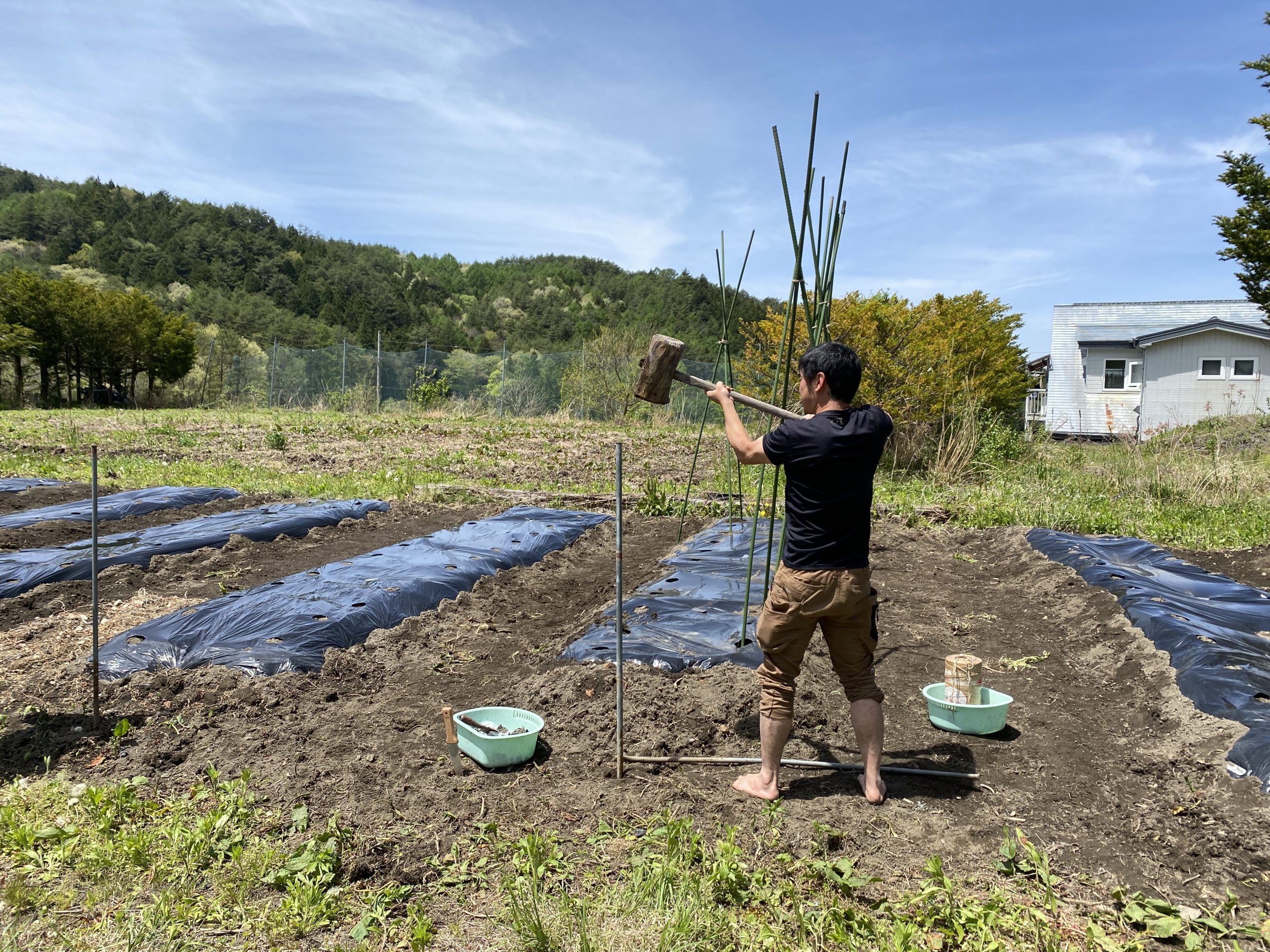 支柱を挿すのに力がいる。支柱が高すぎると、ネットと地面の間に隙間ができてしまう。適当な間隔で支柱を立てたら、ネットがたるみ過ぎてしまう。もしこの地味で辛い作業を1人でやったら、途中で投げ出してしまいそうだな、と思いました。