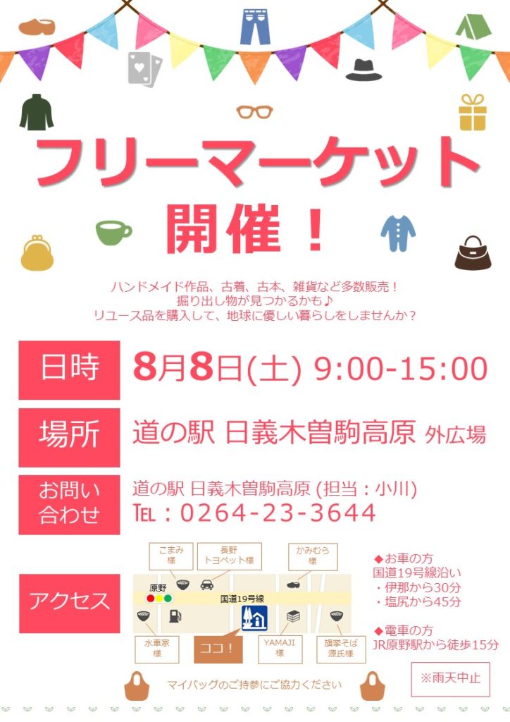 エティセン(元気ですか)?Adjoaです。私は現在、長野県木曽町で地域おこし協力隊として活動しています。地域活性化を目的として、8月と9月に道の駅日義木曽駒高原にてフリマを開催させていただくことになりました。本日はこの場で、8月のフリマの告知をさせていただきます。