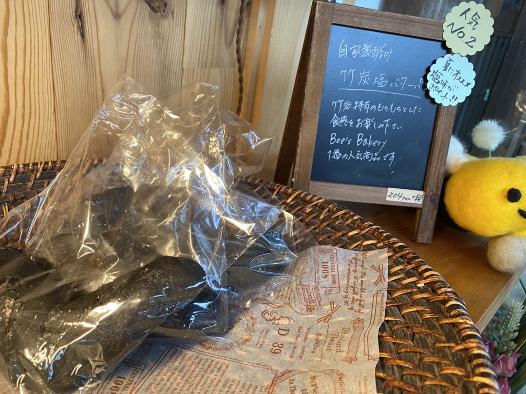 「Bee’s Bakery」は、木曽町三岳地区にあるパン屋さんです。可愛らしい外観と、おしゃれな品揃えが特徴のお店です。私も初めて出かけたときは、「片田舎にこんなおしゃれなパン屋さんがあるなんて!」と驚きました。人気No.2の竹炭塩バターパンは、竹炭なのか、少しシャリっとした食感がして美味しかったです。