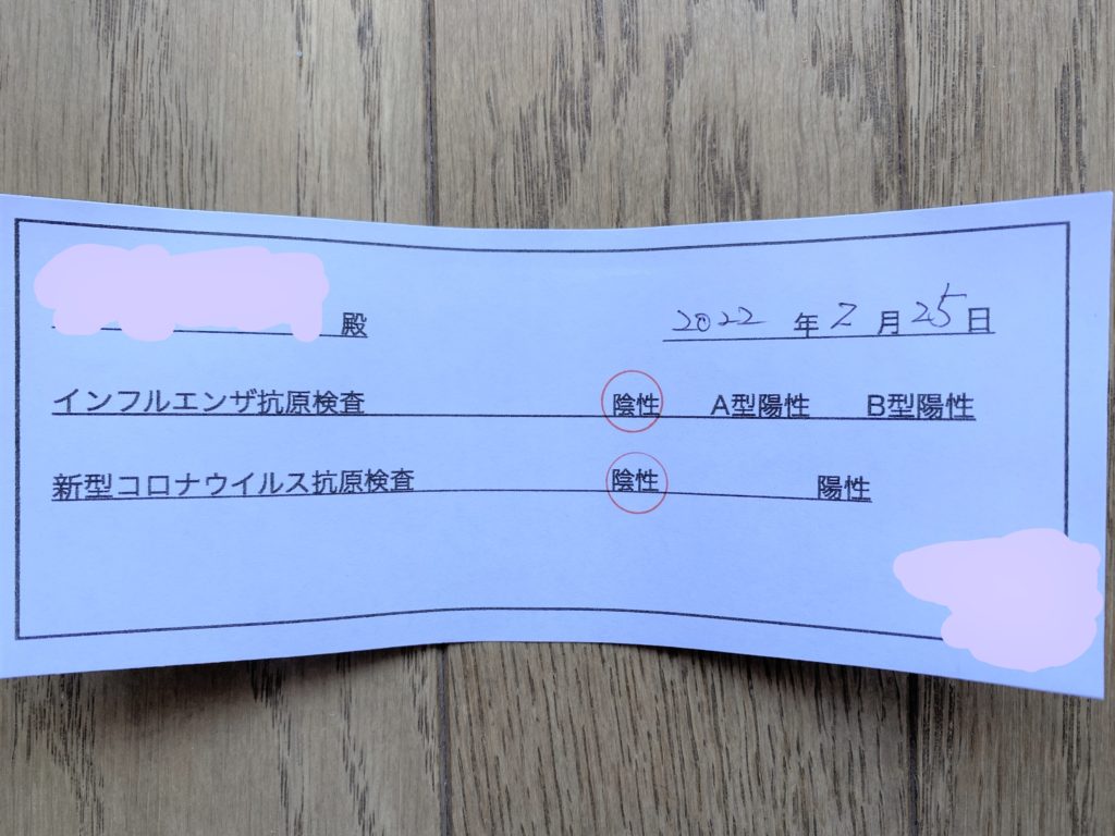 10分後にどちらも「陰性」と伝えられました。陰性証明書のようなものを受け取り、検査は終了となりました。