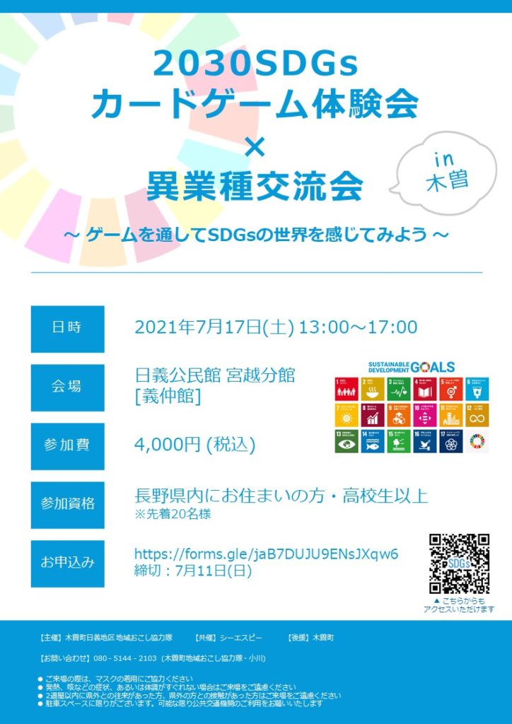 エティセン(元気ですか)? Adjoaです。私は現在、長野県木曽町で地域おこし協力隊として活動しています。2021年7月に、「2030SDGsカードゲーム体験会×異業種交流会」というイベントを開催させていただくことになりました。ここではそのイベントの告知をさせていただきます。