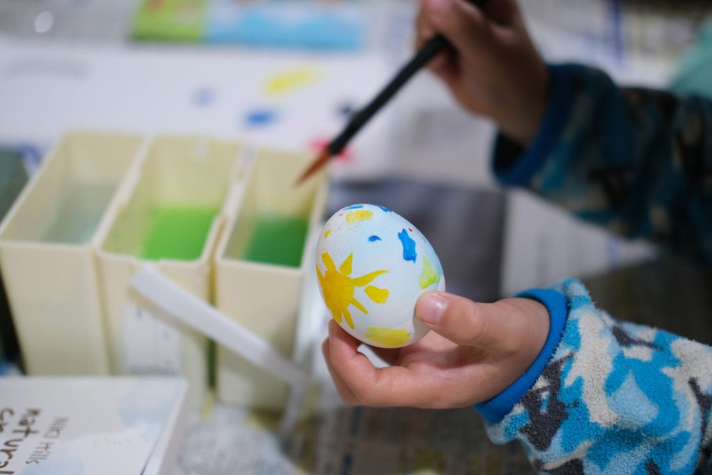 イースターエッグづくりは卵に色を付けるだけの単純かつ簡単すぎる作業にも見えますが、思った以上に子どもたちは楽しんでくれました。イースターエッグどうこうというよりも、自由に絵の具を塗ったり、絵を描いたりするのが楽しいようでした。