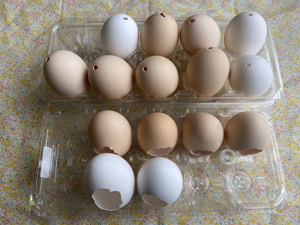 特に卵の中身を食べる場合には、(参加者数にもよりますが)1日にいくつも食べられないので計画的に卵の殻を用意することをお勧めします。