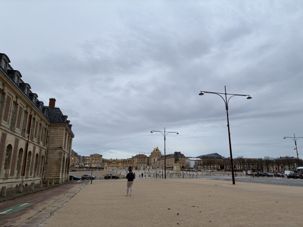 Versailles Chantiers駅からヴェルサイユ宮殿へは、徒歩で向かいました。わかりやすい道を20分ほど歩いていくと、豪華な建物が見えてきました。調べなくともわかります。それがヴェルサイユ宮殿だと。