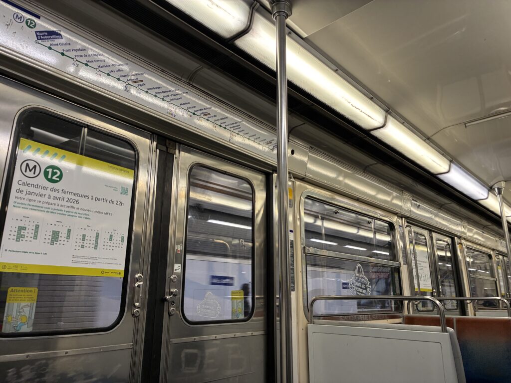 まずは最寄駅の Lamarck – Caulaincourt から、Mairie d’Aubervilliers 行きのメトロに乗りました。パリの日の出は8時過ぎ。クリスマスシーズンで、まだ夜明け前のこの時間帯のメトロはガラガラでした。