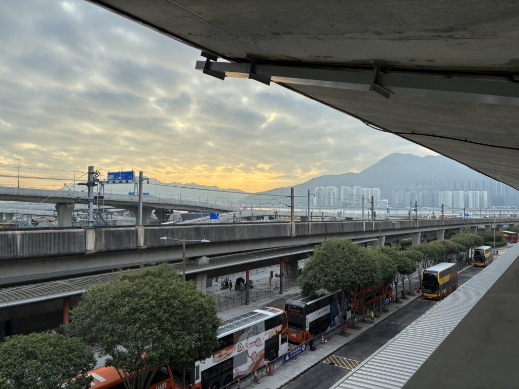 香港では9時間のトランジットがあるため、一度出国しました。