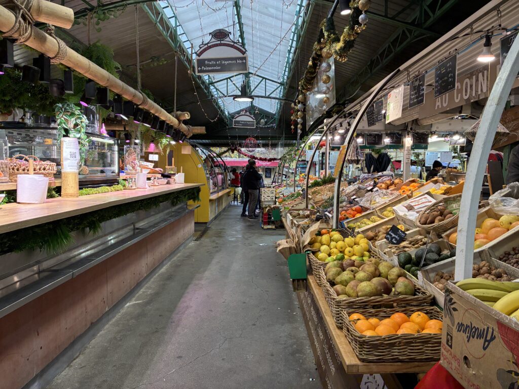 この日はまず、アンファン・ルージュ市場(Marché des Enfants Rouges)に行きました。私は海外のマーケットを見るのが大好きで、特にヨーロッパのマルシェには、いつか訪れてみたいとずっと思っていました。