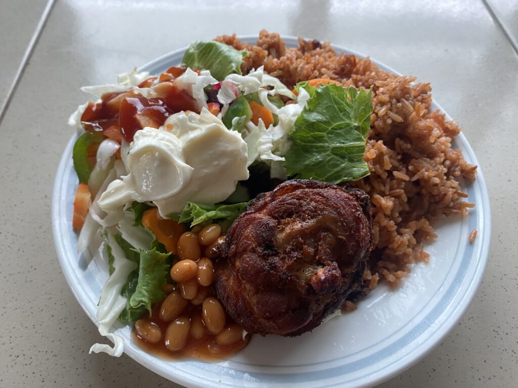 会議の後は、教員向けに食事が用意されていました。ジョロフライスです。日本人の感覚からすると、米の量が尋常じゃない! 3人前くらいありそうな量です。でも、美味しかったので9割くらい食べきりました。ガーナでは、少し残すのがマナーです。完食してしまうと「量が足りなかった」と捉えられます。