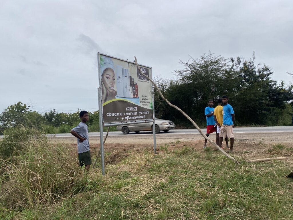 …いや、何もこんなギリギリにやらなくても。もっとできる時あっただろうに…。もう辺りは暗くなり始めているぞ…。ガーナは日本と違って街灯も少ないし、あっても日本の街灯ほどの明るさはない。さて、この作業、真っ暗になる前に終わるのか? 特にやることもないので、私はその一部終始を見守ることにしました。