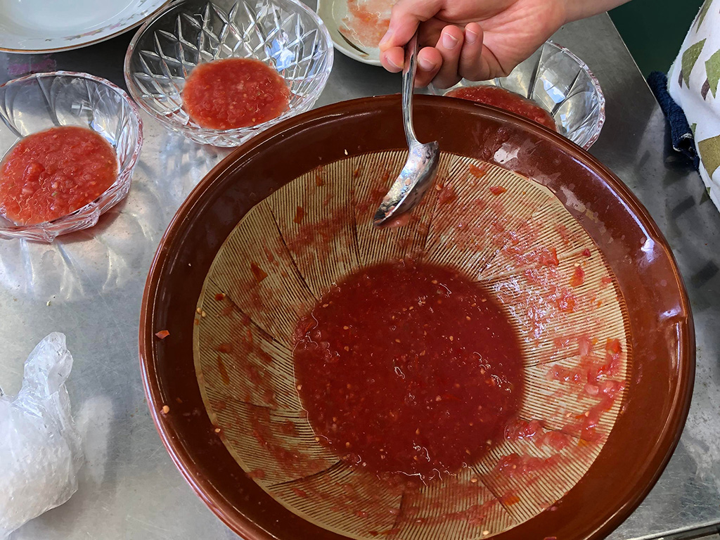 トマト、ピーマン、玉ねぎなどお好みの野菜を5mmくらいのみじん切りにして、溶き卵に混ぜます。それをフライパンで薄焼きにします。日本のオムレツのようにふわふわにはせず、しっかり焼きます。