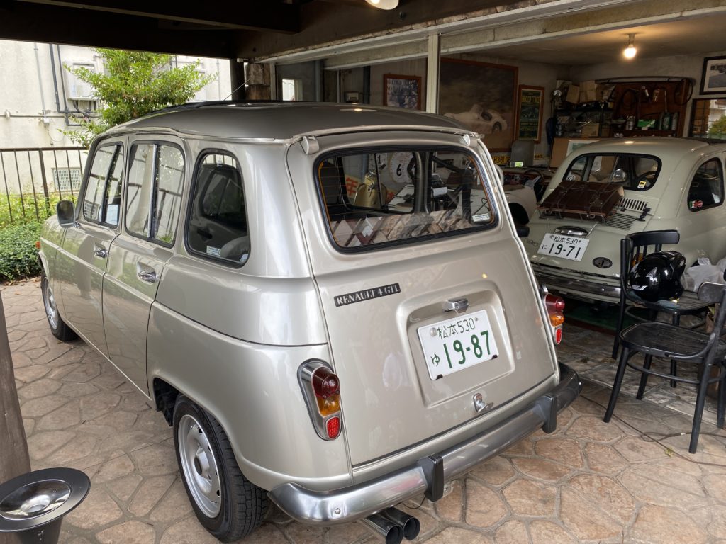 お店の外のガレージには、クラシックカーが数台停まっています。車検も通っていて、公道を走れる車なんだそうです。運が良ければ、店主さんに実際に車を動かしてもらえることもあります。