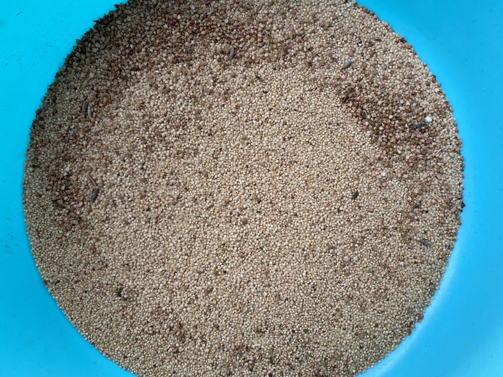 アマランサスの脱穀は、手作業だと結構手間がかかります。少量なら良いかもしれませんが、たくさんあるとを完全に取り除くのも難しいです。