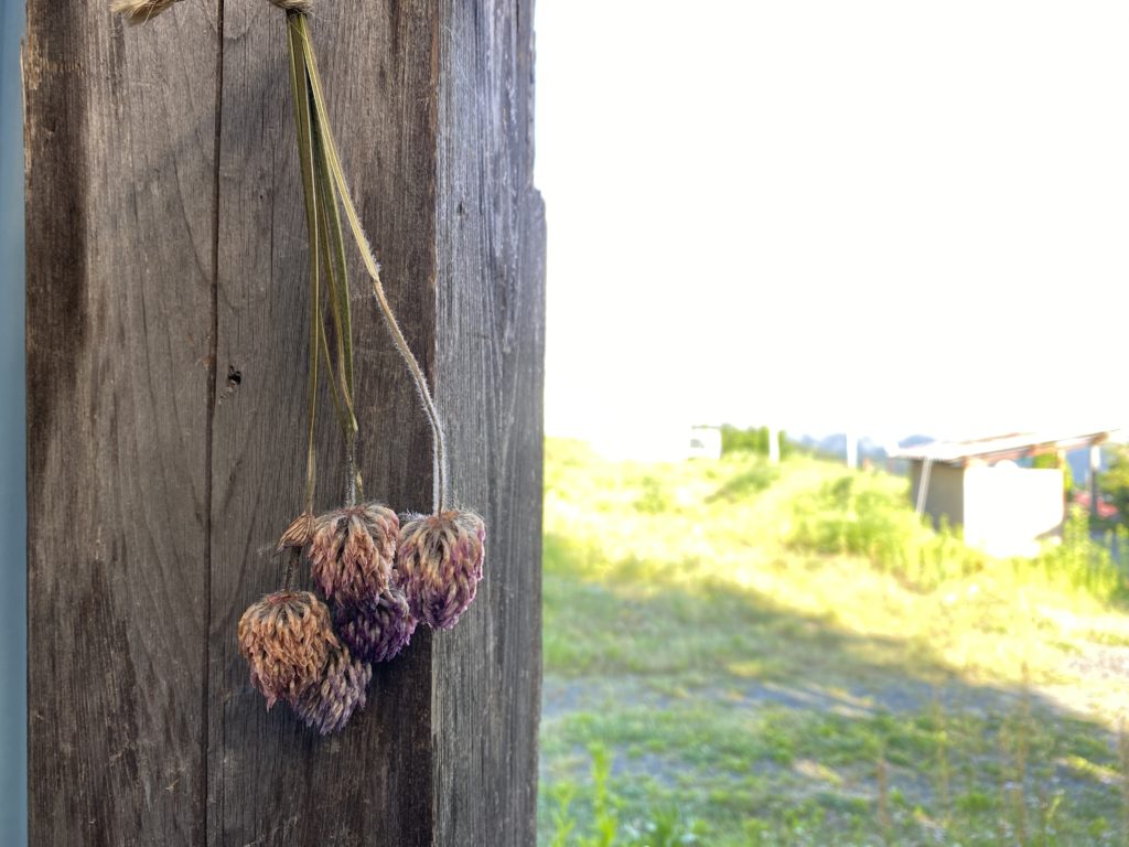 摘んだお花は、ドライフラワーにして楽しむこともできます。私は最近、アカツメクサ(ムラサキツメクサ)と、ユーカリの葉(花ではないですが)をドライフラワーにしてみました。