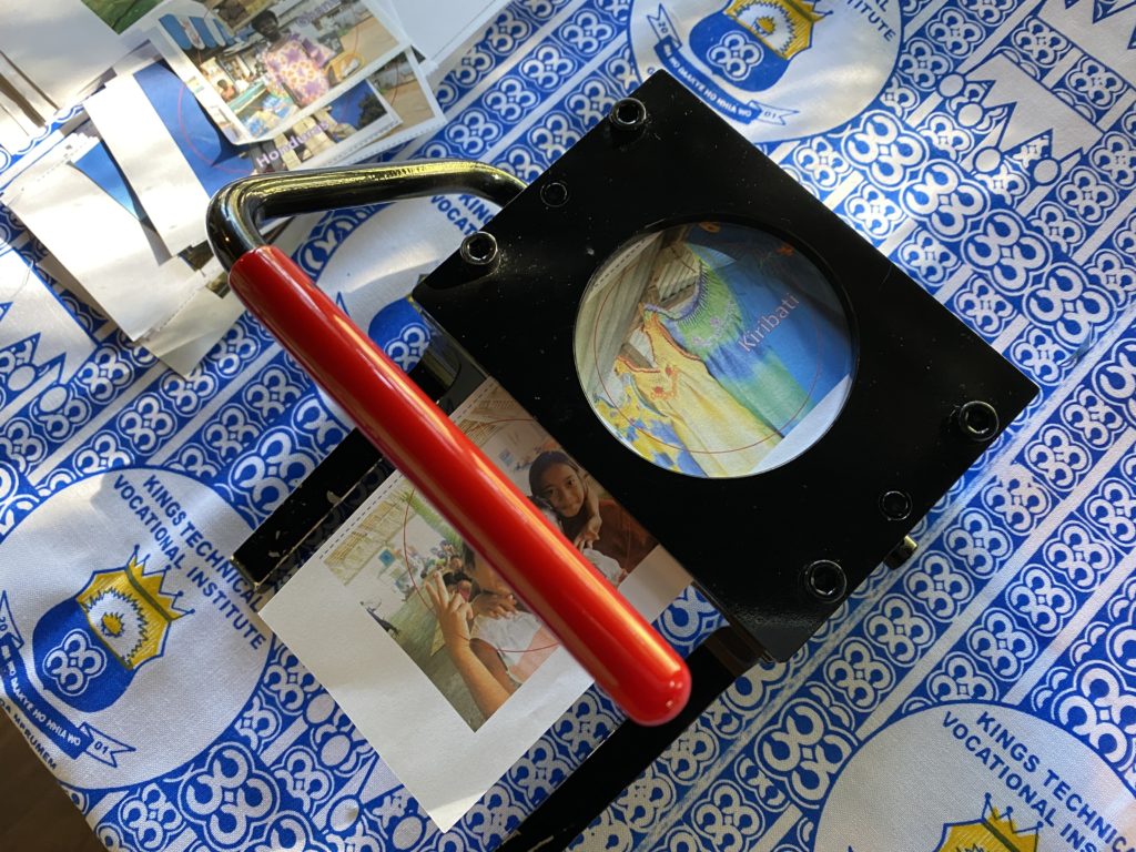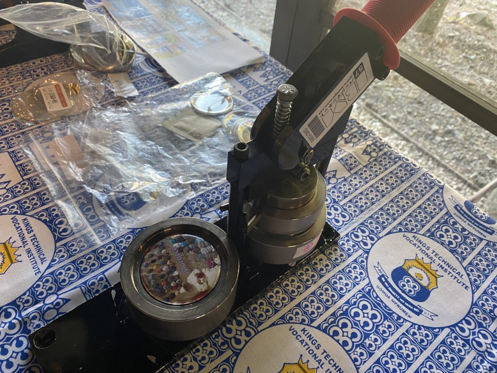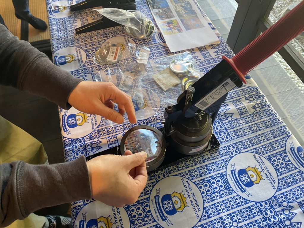 缶バッジマシンのサイズと、円切りカッター、そしてパーツのサイズが一致するように購入しましょう。青年海外協力隊長野県OB会では、57mmのものを使用しています。