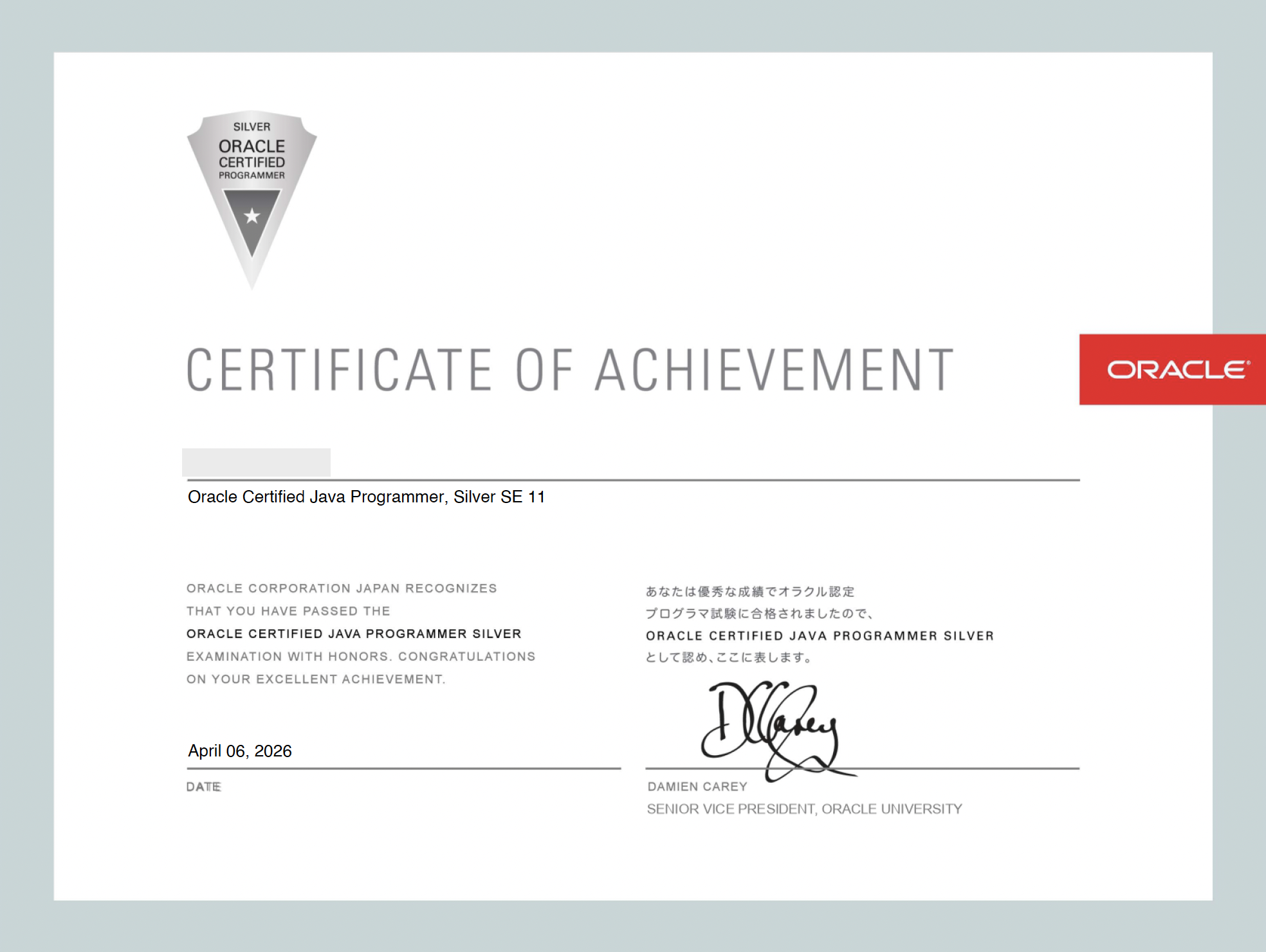先日(2026/04/06)、Java SE 11 Programmer I (Java Silver)の試験を試験会場で受け、合格しました。本記事では、試験当日の様子と、出題された問題についてをご紹介します。これからJava Silverを取得しようとしている方のご参考になれば幸いです。