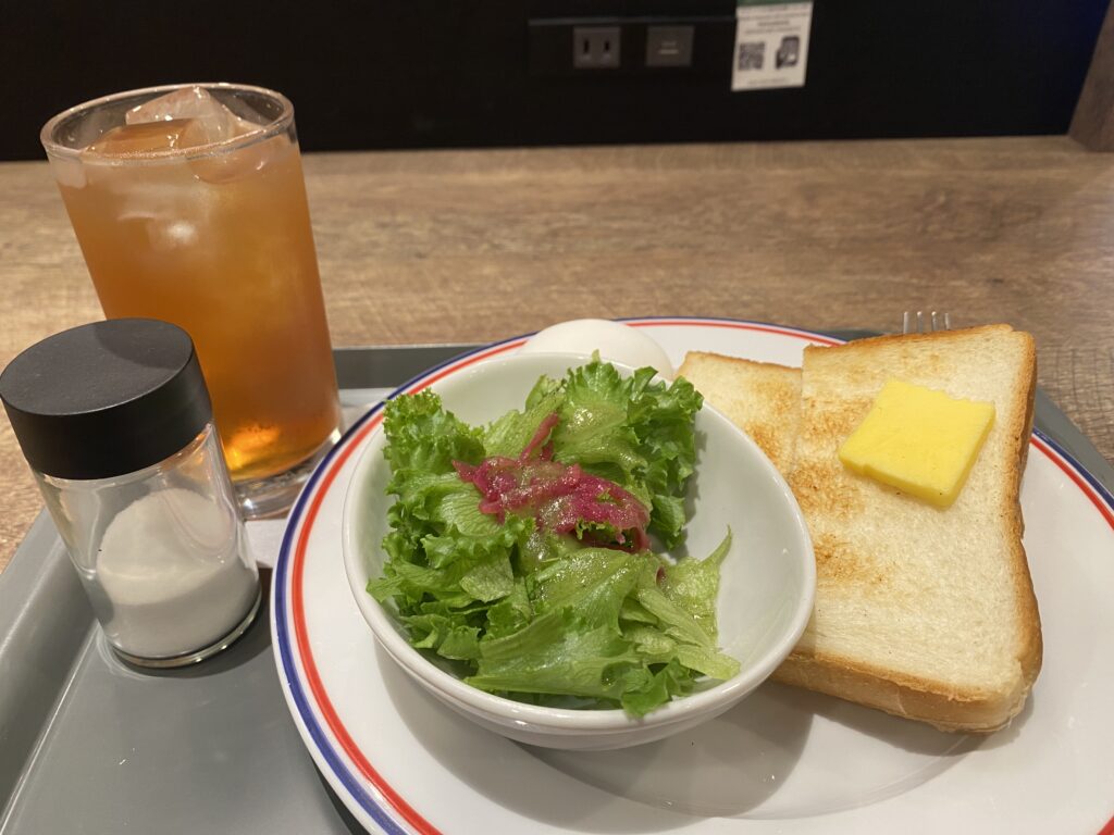 朝食はフロントに併設されているカフェプロントで提供され、東京都心で朝食付き・この料金はかなりコスパ良し!