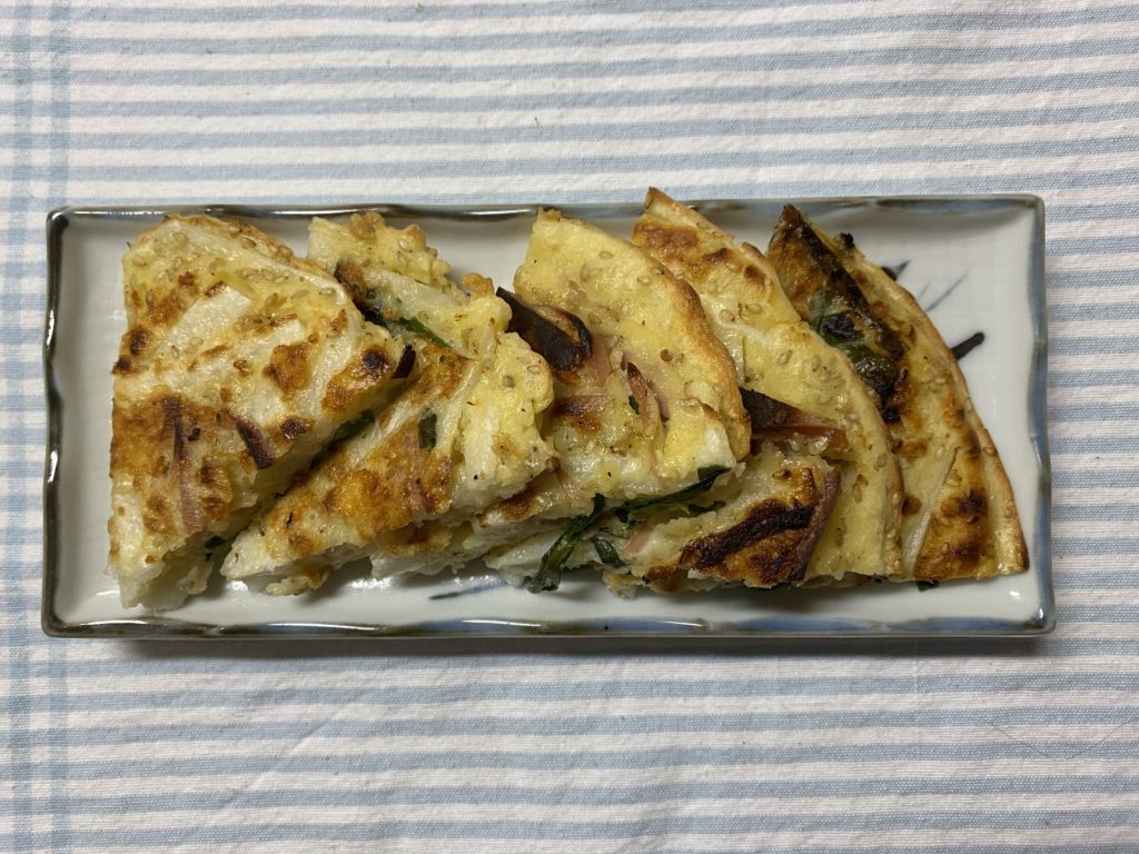 権兵衛芋はしっかり加熱すると、とってもホクホクになり美味しいです。このチヂミではその食感を楽しむことができ、とても美味しかったです。