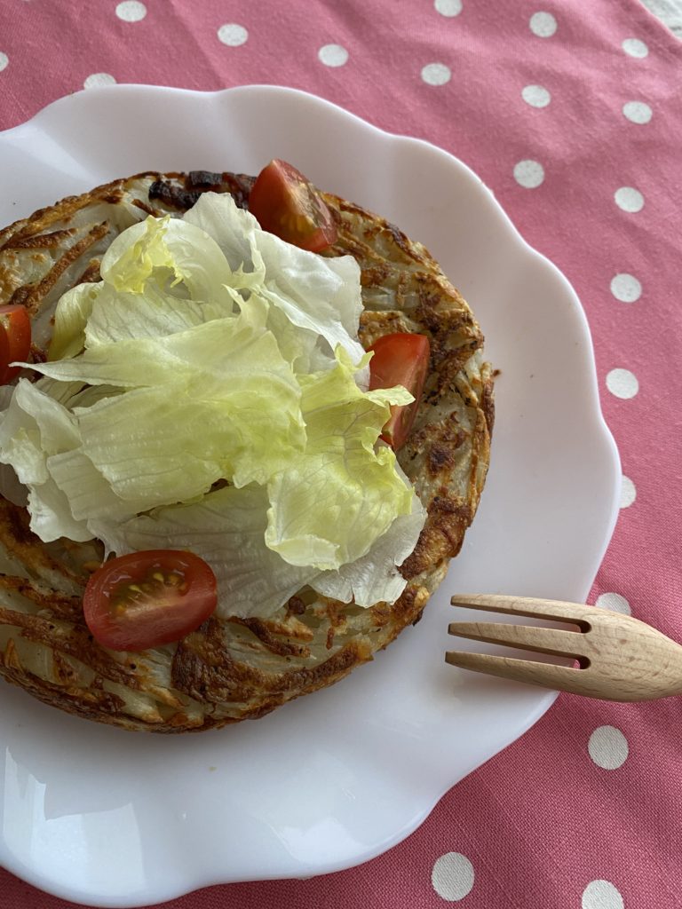 1枚焼くのにじゃがいもを7個使いました。じゃがいもを大量消費したいときにはお勧めです。見た目もおしゃれなので、自宅でカフェ気分を味わいたいときにも良いです。
