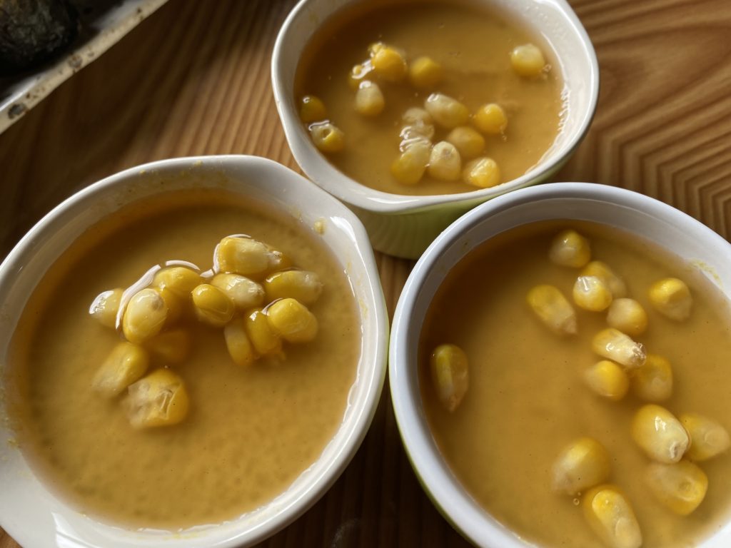 そして本当に木曽駒高原のとうもろこしは甘い! 朝採れのとうもろこしをコーンスープにして飲んでみたところ、思わず「あっま!」と声が出ました。もはや、ジュース以上です。溶けたアイスクリームを飲んでいるような感じでした。もちろん砂糖なんて入れていません。自然の甘みです。