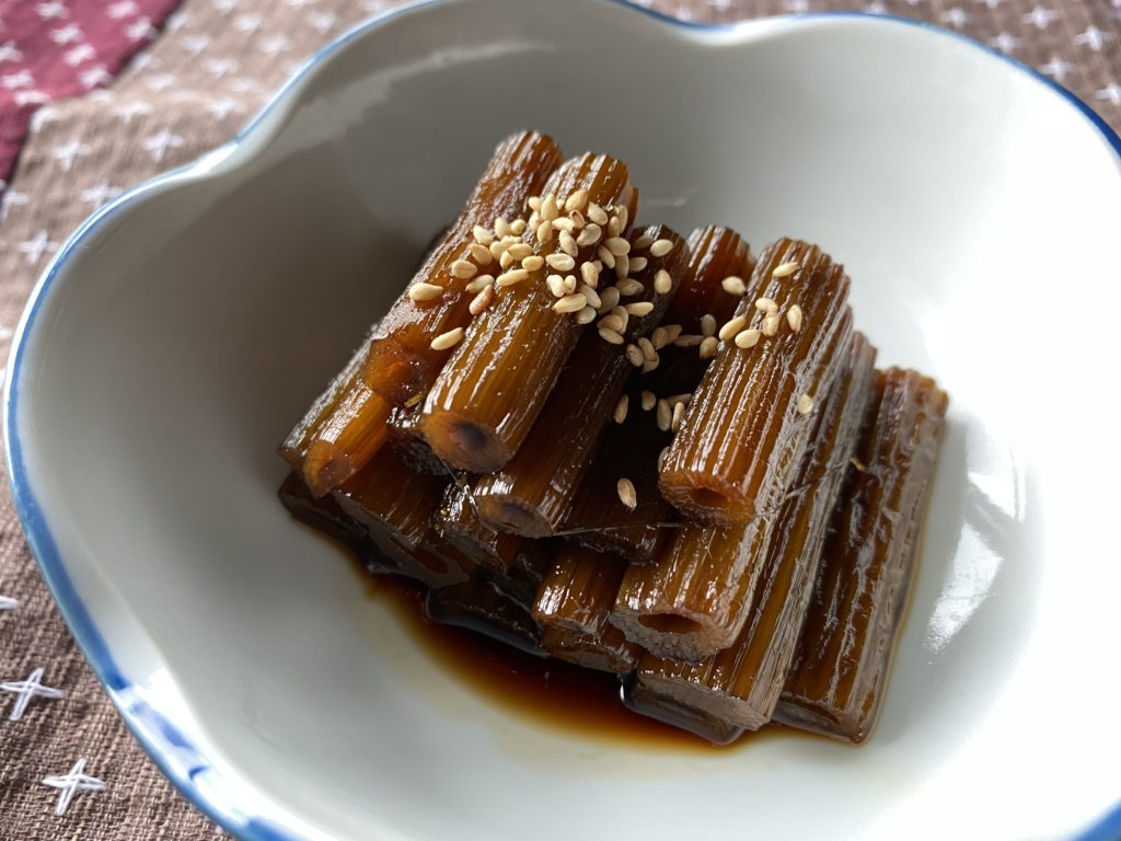 きゃらぶきは、フキを甘辛く煮詰めたものです。濃い目の味付けで、ご飯のお供になりました。春を感じる味わいです。山菜という田舎らしさもあり、都会から友人が来る機会があれば、ぜひ作って振る舞いたい一品です。