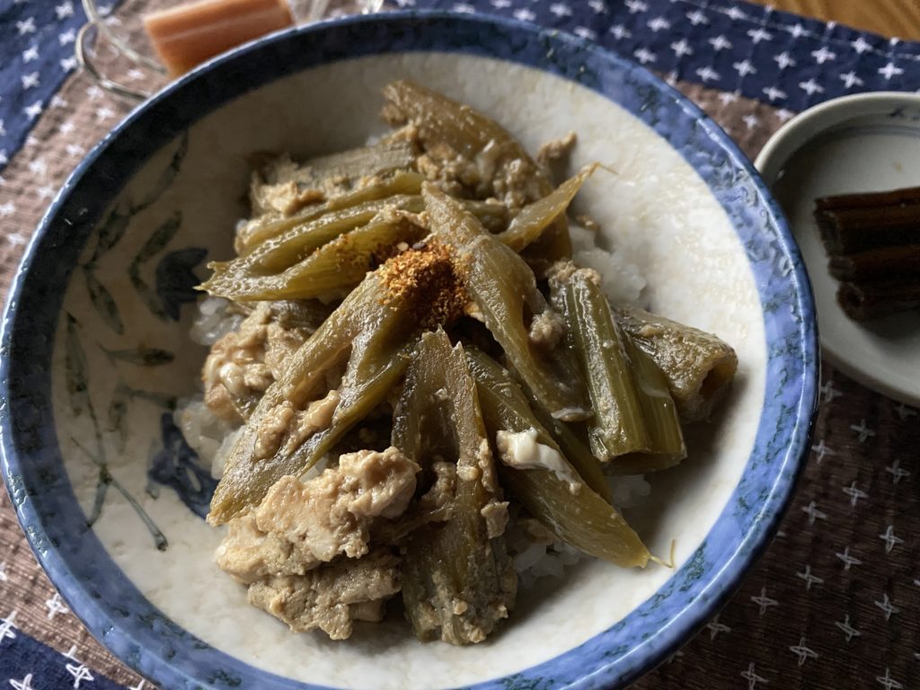 親子丼のような味付けなので、丼にしても美味しいです。フキのクセが苦手な方でも食べられそうな美味しさです。