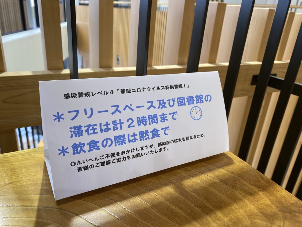 利用時間は午前9時から午後10時まで。図書館の休館日にもフリースペースは利用可能です。ただし、毎月最終木曜日と年末年始は全館休館(フリースペースも含む)となります。