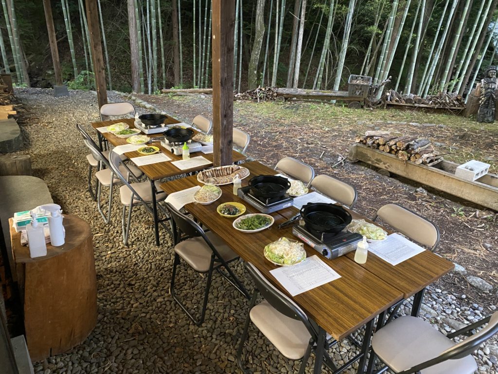 私が宿泊した際の夕食は、外でのBBQ(トンギスカン)でした。朝食は夕飯の残り物を勝手に調理して食べました。