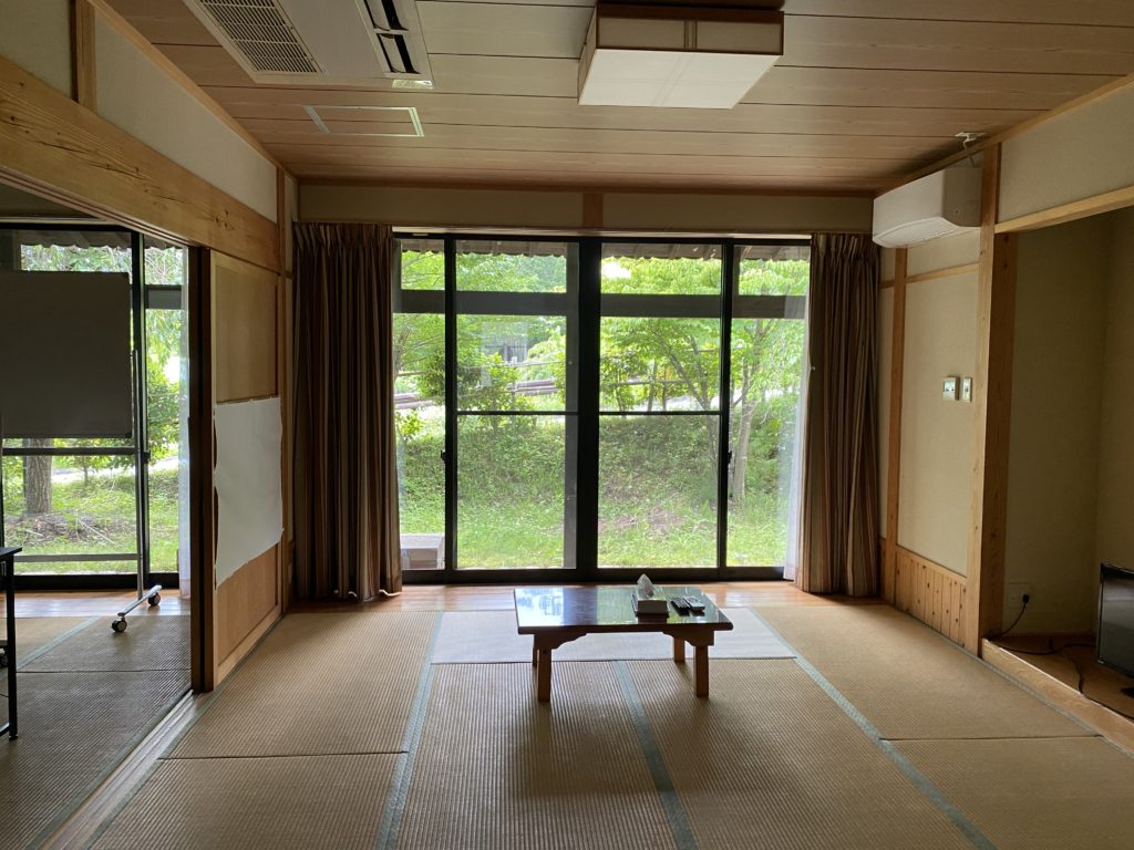 宿泊棟とは別に、セミナーハウスがあります。40名ほどが入れるホールで、研修や会議等はこちらで行うことができます。