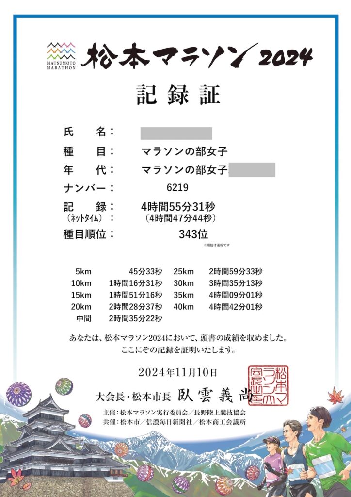 これから松本マラソンに出走してみたい方や、初めてフルマラソンに挑戦する方のご参考になれば幸いです。