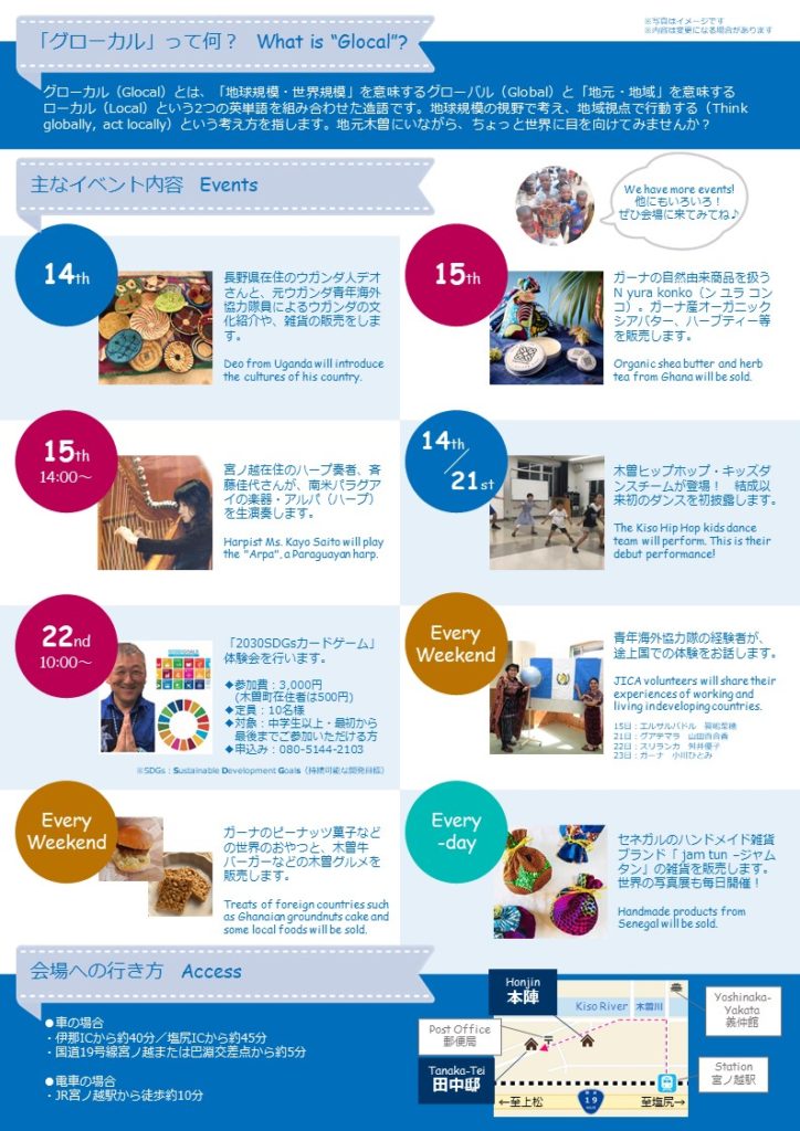 宮ノ越グローカルWEEKは、木曽路宮ノ越宿で、世界の文化を楽しむイベントです。