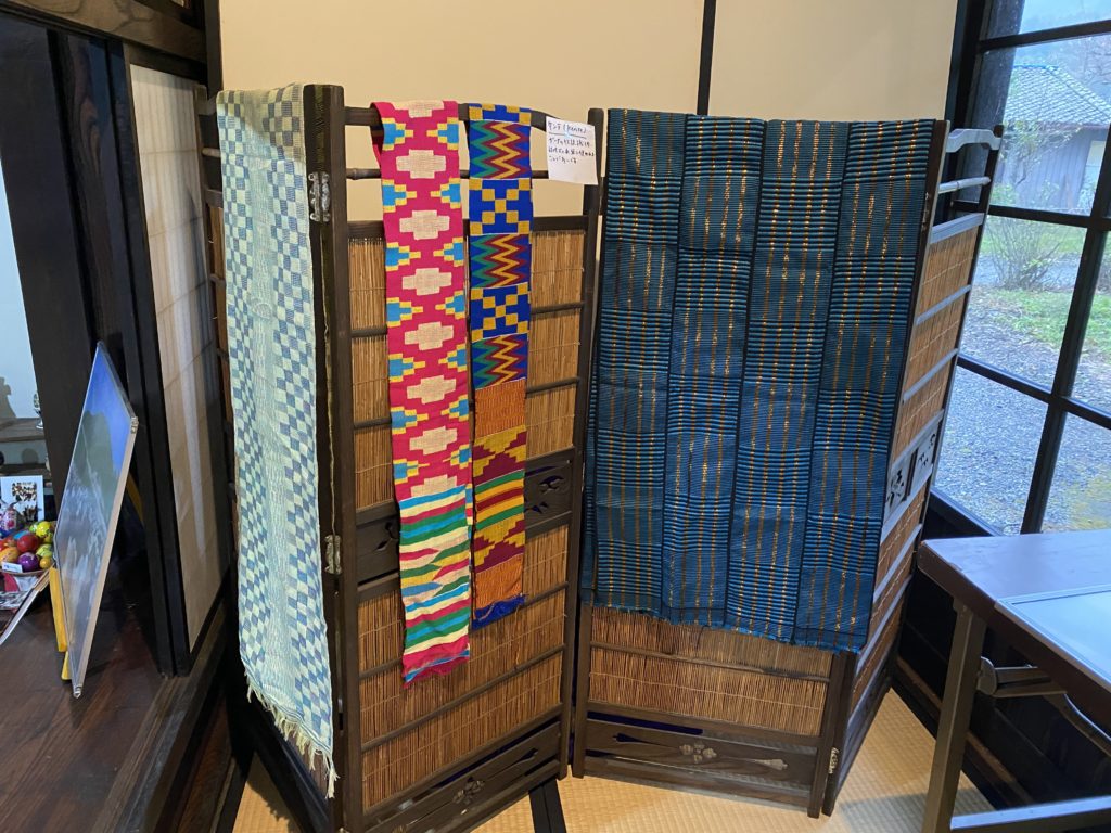 ガーナの伝統織物「ケンテ」を展示しています。