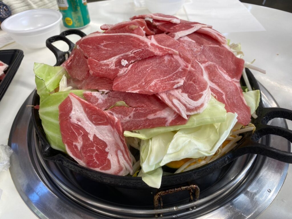 マラソン大会が終わった後は、牧場内の食堂でジンギスカン&ビュッフェをいただきました。