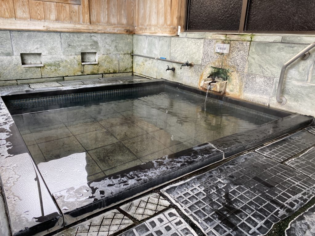 お湯は無色のように見えました。…が、インターネットで松葉の湯を検索すると白濁したお湯の写真が多く表示されます。もしかすると私が来る前に先客がいて、水でお湯を薄めた後だったのかもしれません。
