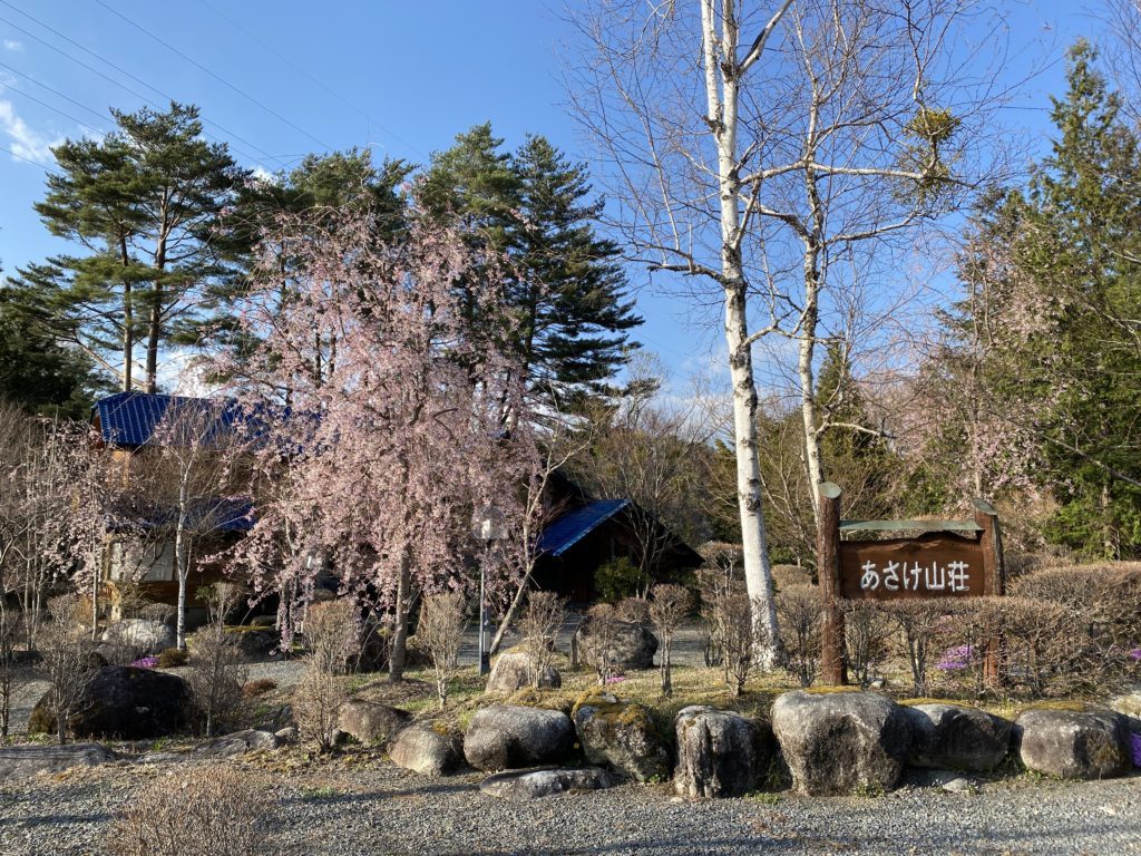 こちらは木曽駒高原の「あさけ山荘」さんの敷地内の枝垂桜です。