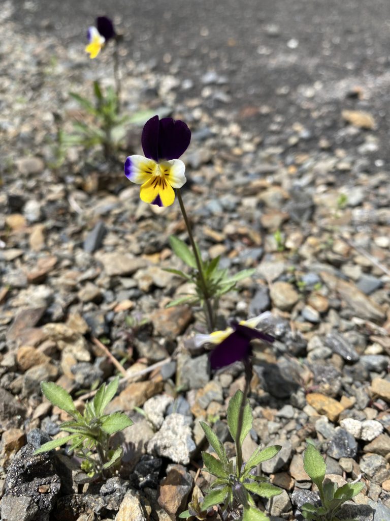 見た目はパンジーのようですが、1~2cmくらいの小さな花でした。植えられたものではなさそうです。風に乗って飛んできた種から咲いたような感じです。