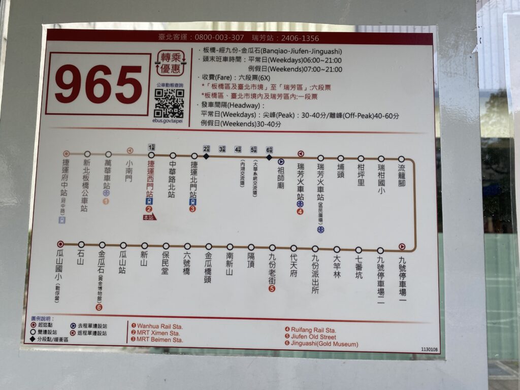 8:20に宿を出発し、9:00に「西門」バス停に着き、965番「金瓜石」行きのバスを待ちました。