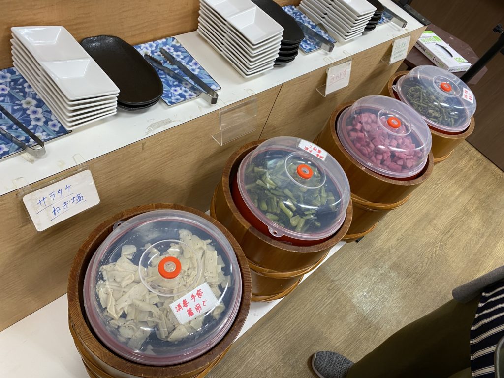 漬物の試食コーナー(食堂利用者専用)があるのは、ポイント高めです。