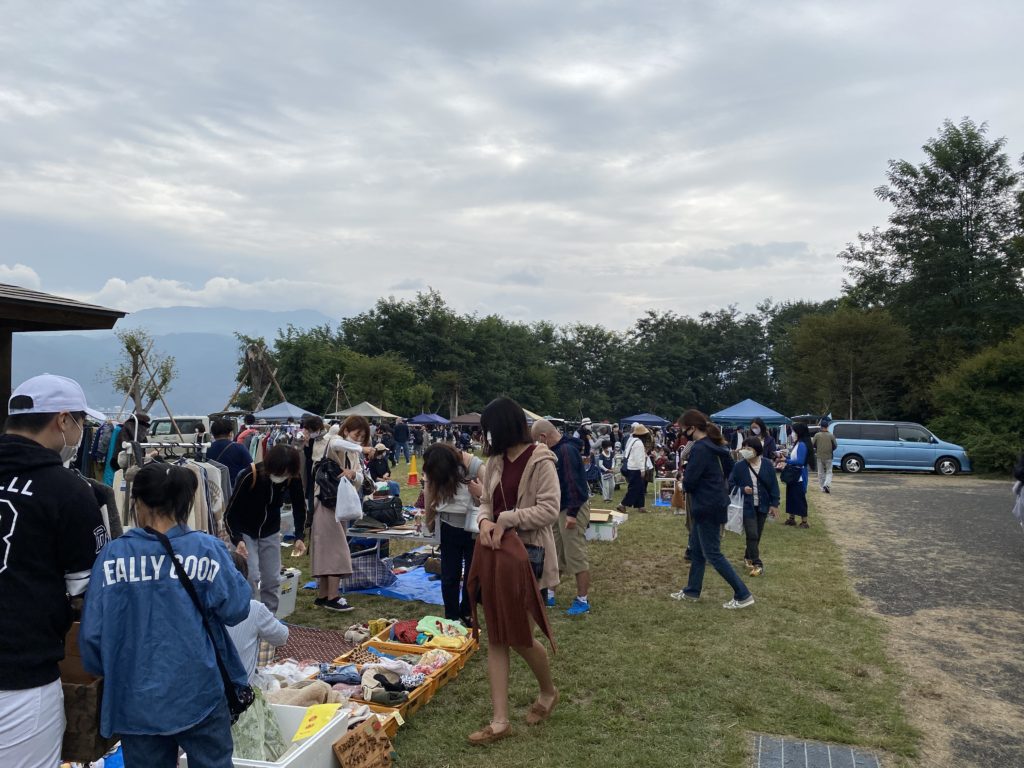 松本市蟻ヶ崎地区にあるアルプス公園では、毎週日曜日にフリーマーケットを開催しています。私も地域おこしの活動でフリマを開催しているので、勉強のために視察に行きました。商品の陳列方法など、勉強になることが多かったです。