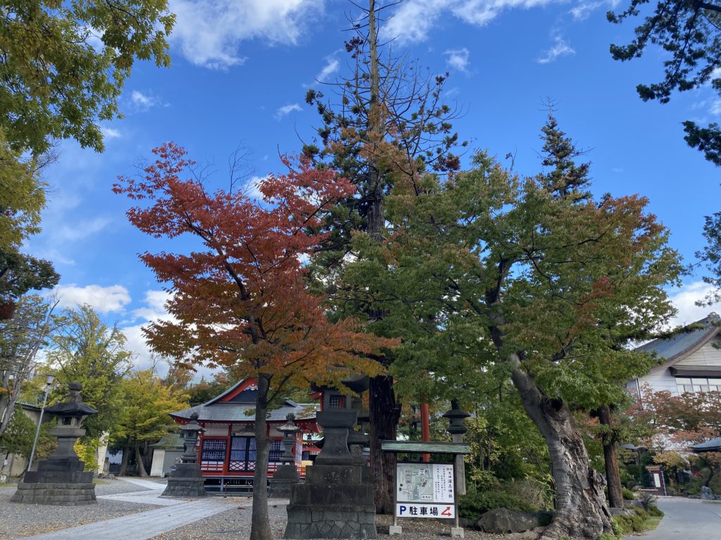 深志神社は、松本市深志にある神社です。紅葉の様子を見に行きました。神社と朱色と空の青さ、そして紅葉のコントラストがきれいでした。