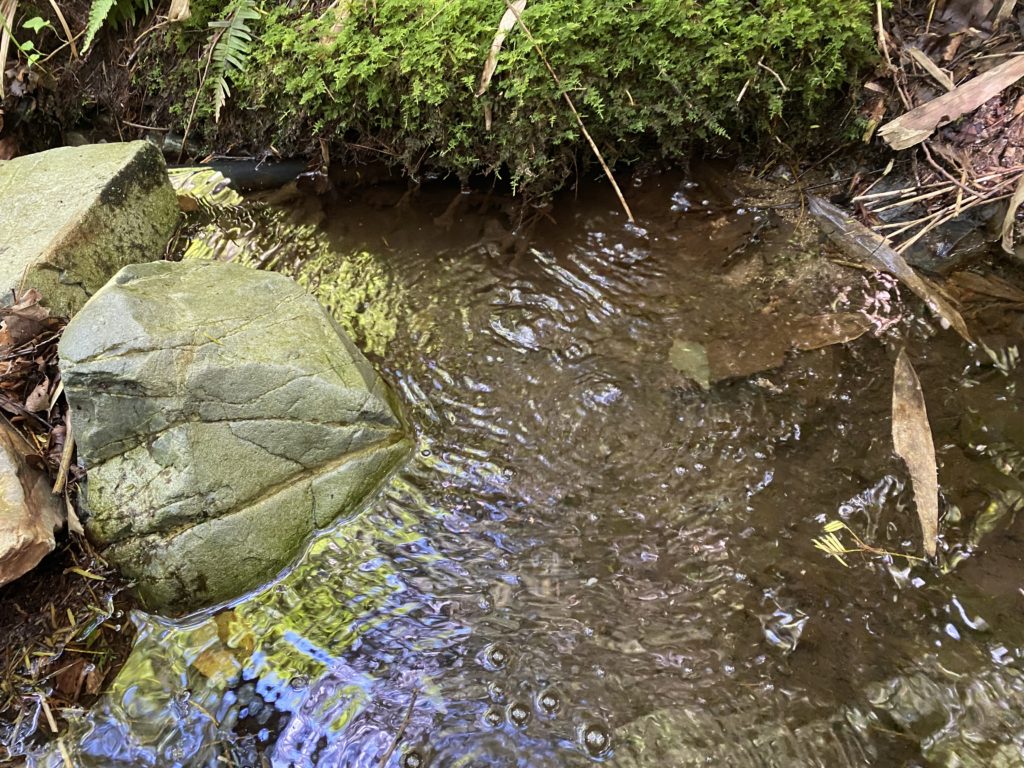 「旧湯」とは、天然の炭酸水の湧いている場所です。飲んでみたところ、本当に炭酸水の味がしました。水を触ってみたところ、冷たい水でお湯ではありませんでした。